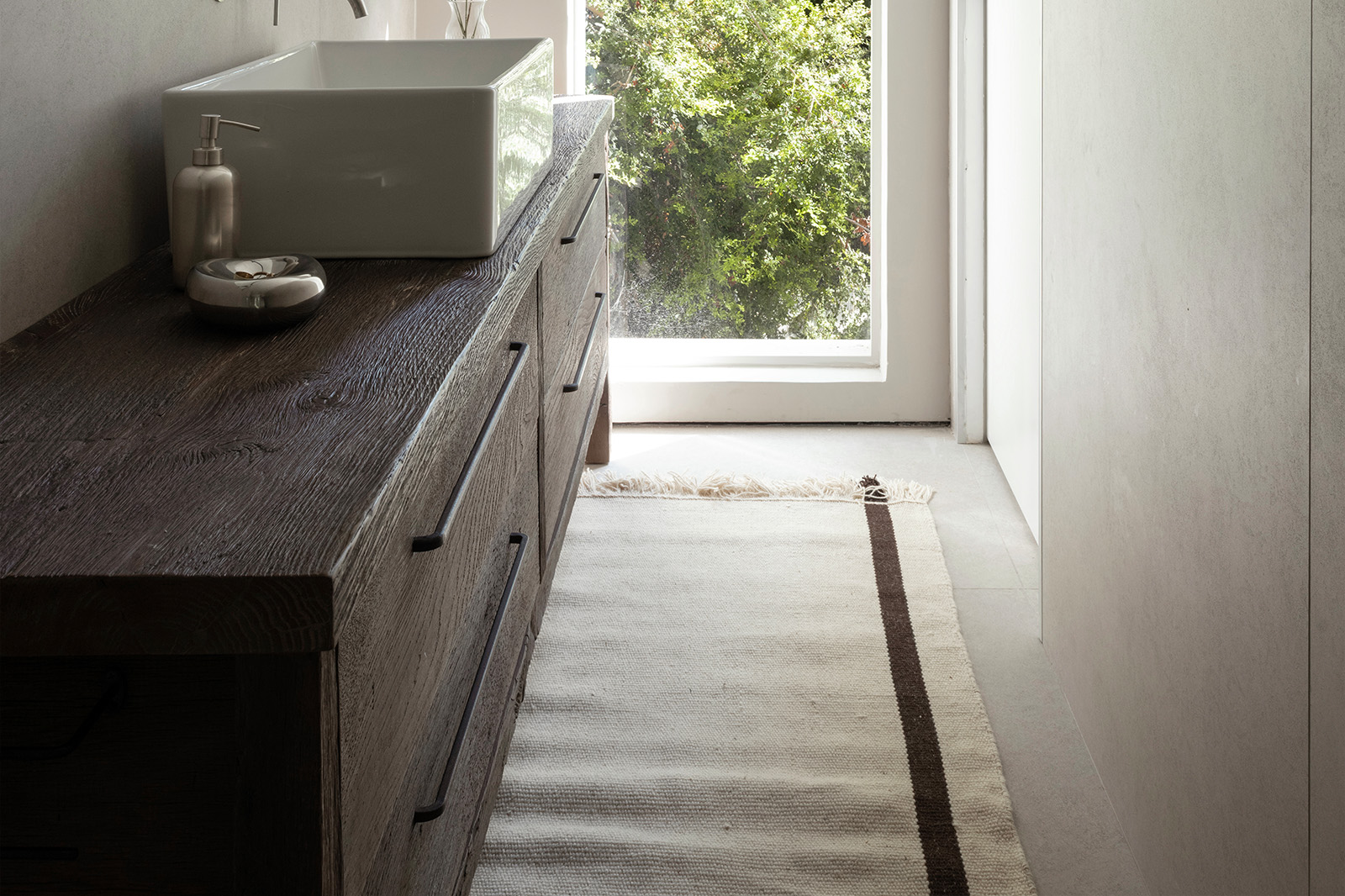 Bathrooms: Faucets and sanitary ware; custom-made brushed sprayed “Kanadi” stone sink; thin porcelain sink, MINIMAL model