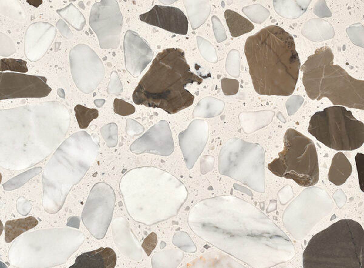 האריחים הם למעשה שברי אבנים המעורבבים עם בטון ודבקים שונים היוצרים חומר בעמידות גבוהה, קל ליישום ומיועד לכל אזורי הבית.