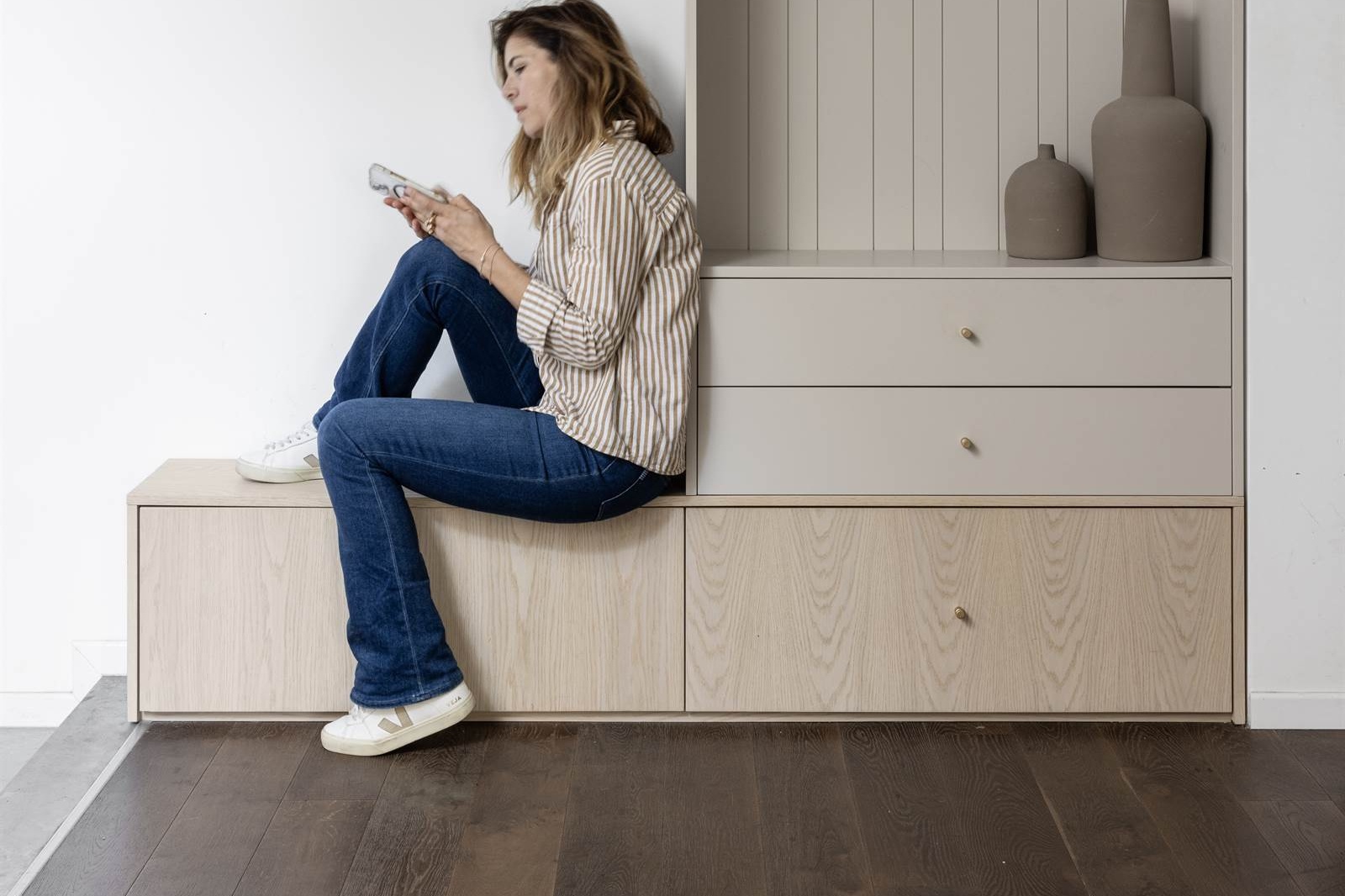 ריצוף קומת כניסה : פרקט אלון דגם ומידה - אסם לכה GERY ASH 15/4*70-230*400-2200
