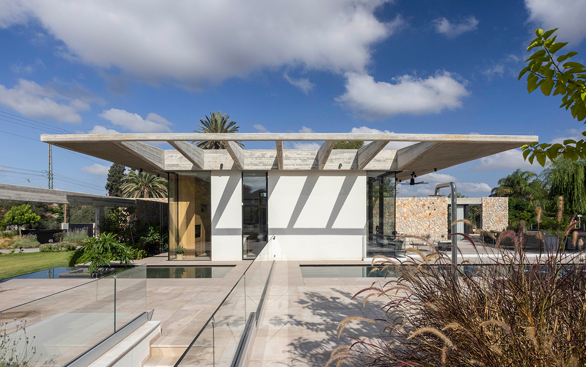 עבור ריצוף אזור חוץ, שביל כניסה וסביב בריכה : אבן אמורפית בזלת רמת הגולן בעיבוד מוברש.